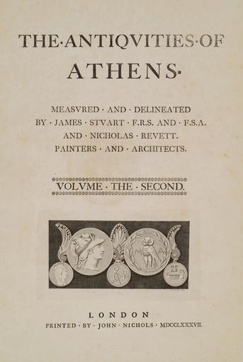 Keywords: Title page of the second volume of the book Medallions of three Athenian demes- Marathon, Rhamnous and Prasiai - Stuart James & Revett Nicholas - 1787.jpg en James Stuart Nicholas Revett The Antiquities of Athens measured and delineated by James Stuart F R S and F S A and Nicholas Revett Painters and Αrchitects vol III ed Willey Reveley London John Nichols 1794 1794 http //eng travelogues gr/collection php view 174 Creator James Stuart Creator Nicholas Revett other versions Custom license marker 2016 04 06 PD-old PD-1996 The Antiquities of Athens measured and delineated |