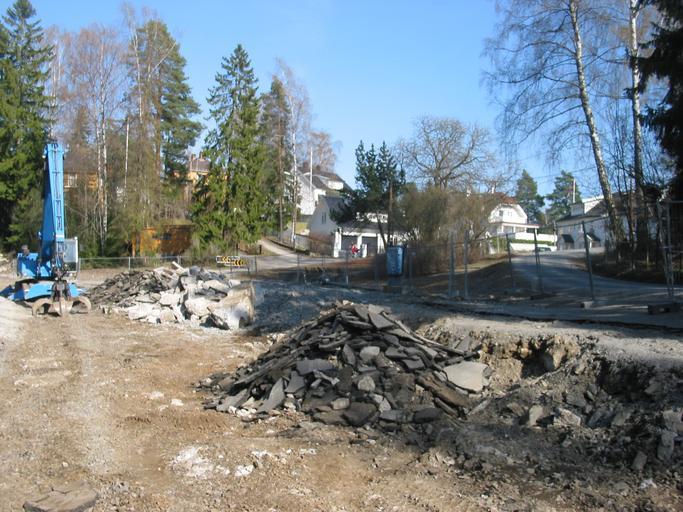 Keywords: Tjernsrud demolished.jpg en Tjernsrud station in a demolished state Own Punkmorten 2009-04-24 Reconstruction of Kolsåsbanen 2006-2014 Tjernsrud stasjon Destroyed buildings