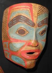| Keywords: Tlingit mask VK 48, donated 1846 - Museum of Cultures (Helsinki) - DSC04927.JPG en Exhibit in the Arvid Adolf Etholén collection Museum of Cultures Helsinki Finland Photography was permitted in the museum without restriction Daderot 2012-08-16 04 56 50 Daderot cc0 cc0 Tlingit masks in the Etholén collection |