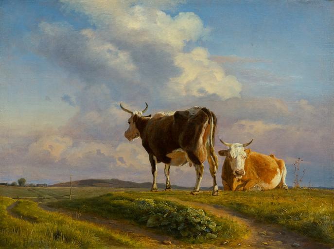 Keywords: To køer på en åben mark.jpg Artwork creator Johan Thomas Lundbye da To køer på en åben mark 1845 oil canvas cm 47 2 62 7 institution Statens Museum for Kunst Copenhagen object history Acquired 2008-08-13 exhibition history credit line accession number KMS8567 photo Villy Fink Isaksen and https //www kulturarv dk/kid/VisVaerk do vaerkId 407981 www kulturarv dk PD-old-100 cc-by-4 0 User Villy Fink Isaksen/credit Uploaded with UploadWizard 1845 paintings Johan Thomas Lundbye Paintings in Statens Museum for Kunst Quality images by Villy Fink Isaksen Paintings of cows QualityImage |