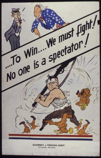 | Keywords: ...To Win...We Must Fight^ No One is a Spectator^ - NARA - 534319.jpg Scope and content General notes 534319 Local identifier 179-WP-471 Office for Emergency Management War Production Board 01/1942 - 11/03/1945 Still Picture Records Section Special Media Archives Services Division NWCS-S National Archives at College Park 8601 Adelphi Road College Park MD 20740-6001 other date circa 1942 1943 Record group Record Group 179 Records of the War Production Board 1918 - 1947 Record group ARC 508 War Production Board compiled 1942 - 1943 Series ARC 533858 File unit File unit ARC Variant control numbers NAIL Control Number NWDNS-179-WP-471 Other versions <gallery> File To_Win We_Must_Fight _No_One_is_a_Spectator _-_NARA_-_534319 tif tif File To_Win We_Must_Fight _No_One_is_a_Spectator _-_NARA_-_534319 jpg jpg </gallery> NARA-cooperation PD-USGov World War II posters from the United States |