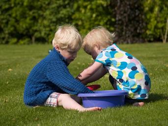 Keywords: together play game nature water toys brother sister family camping holiday recreation enjoyable entertainment fun free time focus playing field play along people spectacle