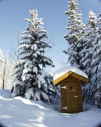 Keywords: toilet out house wooden beautiful winter season nature snow cold dry home wintry freezing trees wcc
