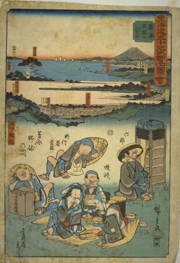 | Keywords: Tōkaidō gojūsan tsugi saiken zu'e, Fujisawa by Hiroshige.jpg ja 海道五十三次細見 㑹 藤澤 道中風俗 草原野休の図 金毘羅参り 六部 順禮 修行 昼 en Fujisawa Pilgrims Resting from the series Pictorial Guide to the Fifty-three Stations of the Tôkaidô Customs of the Road Tôkaidô gojûsan tsugi saiken zue dôchû fûzoku circa 1845 1846 http //dl ndl go jp/info ndljp/pid/1309950 Institution National Diet Library Creator Utagawa Hiroshige other versions Custom license marker 2016 12 07 PD-Japan PD-old-auto-1923 1858 Tōkaidō gojūsan tsugi saiken zu'e 07 Fujisawa-juku Shōjōkō-ji Enoshima in art Sleeping people in art Onigiri in art Prints in the National Diet Library |