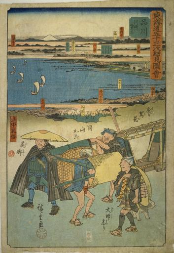 | Keywords: Tōkaidō gojūsan tsugi saiken zu'e, Shinagawa by Hiroshige.jpg ja 海道五十三次細見 㑹 道中風俗 品 戻り駕籠 同山駕籠 大師参り 飛脚 en Shinagawa Palanquin Carriers Pilgrim to the Daishi Shrine and Courier from the series Pictorial Guide to the Fifty-three Stations of the Tôkaidô Customs of the Road Tôkaidô gojûsan tsugi saiken zue dôchû fûzoku circa 1845 1846 http //dl ndl go jp/info ndljp/pid/1309949 Institution National Diet Library Creator Utagawa Hiroshige other versions Custom license marker 2016 11 29 PD-Japan PD-old-auto-1923 1858 Tōkaidō gojūsan tsugi saiken zu'e 02 Shinagawa-juku Goten'yama Shinagawa Omori Tokyo Ikegami Honmonji Kago in ukiyo-e Hikyaku Prints in the National Diet Library |