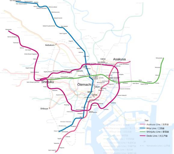 | Keywords: TokyoSubway Toei.svg en Map of Tokyo Metropolitan Bureau of Transportation Toei Lines Derivation of File TokyoSubway svg own Gorgo 2009-12-19 Public domain <gallery> File TokyoSubway svg Tokyo Metro Toei Yamanote File TokyoSubway Metro svg Tokyo Metro File TokyoSubway Yamanote svg JR Yamanote </gallery> Tokyo Subway maps Tokyo Toei Subway |