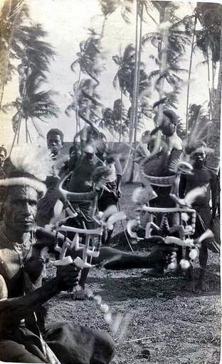 | Keywords: Tolai dancers, Malakuna.jpg Tolai people Malakuna near the town of Rabaul Gazelle Peninsula of New Britain Papua New Guinea c 1918 Private photograph printed on Kodak Austral stock Tolai-Volk Gazelle-Halbinsel von Neubritannien Papua-Neuguinea <br /> Tänzer in Malakuna nahe der Stadt Rabaul privates Foto 1918 http //www oceania-ethnographica com/mel141 html Photographer unidentified Australian naval serviceman ~ 1918 PD-old Tolai AAdance Male dancers Dancers People in 1918 | ||||