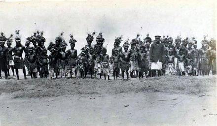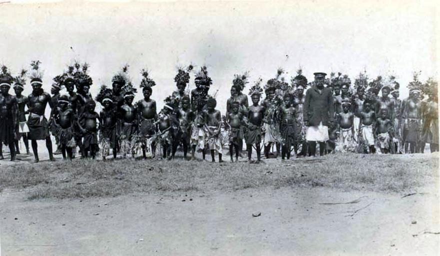 | Keywords: Tolai dancers, Nodup2.jpg Tolai people Nodup near the town of Rabaul Gazelle Peninsula of New Britain Papua New Guinea c 1918 Private photograph printed on Kodak Austral stock Tolai-Volk Gazelle-Halbinsel von Neubritannien Papua-Neuguinea <br /> Tänzer in Nodup nahe der Stadt Rabaul 1918 privates Foto http //www oceania-ethnographica com/mel143 html Photographer unidentified Australian naval serviceman ~ 1918 PD-old Tolai AAdance Male dancers Dancers People in 1918 | ||||