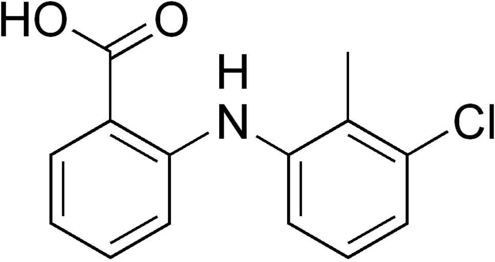 Keywords: Tolfenamic Acid.png chemical structure of tolfenamic acid Own 2009-03-13 Edgar181 200px Non-steroidal anti-inflammatory drugs 2-aminobenzoic acid Diphenylamines Chlorotoluenes Chloroanilines Monochlorobenzenes