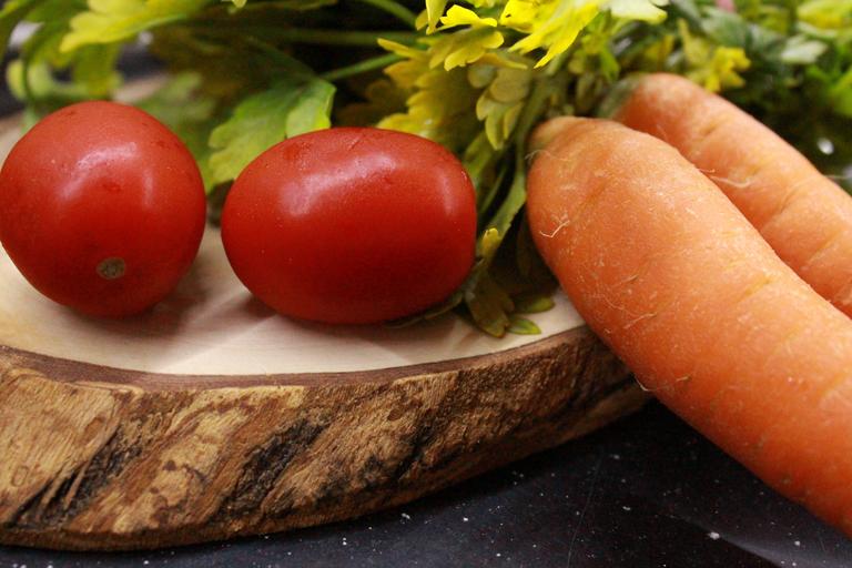 Keywords: tomato carrot parsley red green orange food nutrition health healthy eating healthy lifestyle healthy food chopping board tree wood cherry tomatoes diet