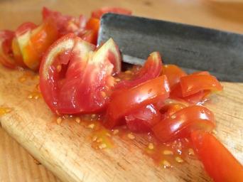 Keywords: tomato tomato pieces cores knife cut board kitchen cook frisch juicy red food vegetables blade sharp