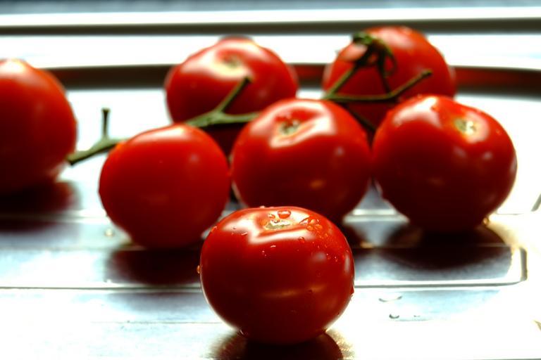 Keywords: tomatoes bush tomatoes vegetables red food eat frisch healthy garden close nachtschattengewächs meal vitamins tomatenrispe tomato fruit salad kitchen grow ripe firm delicious macro