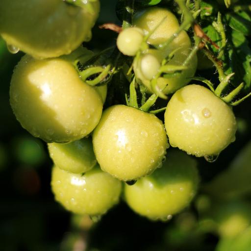 Keywords: tomatoes immature grow summer water bush rain bokeh