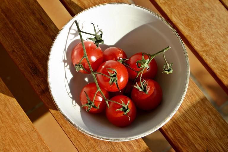Keywords: tomatoes red vegetables food healthy vegetarian frisch vitamins garden eat nachtschattengewächs kitchen bowl about