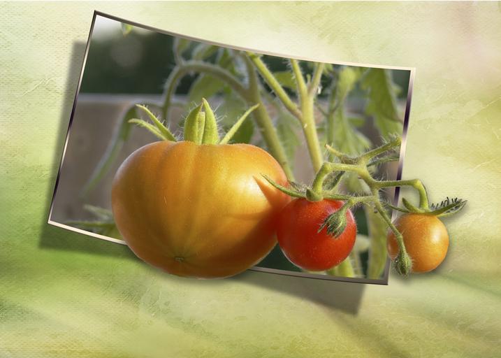 Keywords: tomatoes yellow red vegetables veggie out of bound food gemuese artwork plants digital art nature garden