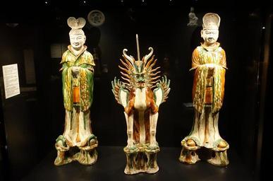 Keywords: Tomb figures of two officials with a guardian animal, China, Tang dynasty, earthenware with three-color lead glaze - Östasiatiska museet, Stockholm - DSC09620.JPG en Exhibit in the Östasiatiska museet Stockholm Sweden This artwork is old enough so that it is in the public domain Photography was permitted in the museum without restriction 2014-09-13 07 14 38 own Daderot other versions cc-zero Ceramics of the Tang Dynasty in Östasiatiska museet Uploaded with UploadWizard |