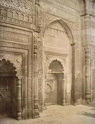 | Keywords: Tomb of Shumsuddin at the Kutab Delhi in the 1890s.jpg en Photograph of carvings on the interior of Iltutmish ™s Tomb in Delhi taken by Lala Deen Dayal in the 1890s from the Curzon Collection 'Views of places proposed to be visited by Their Excellencies Lord Lady Curzon during Autumn Tour 1902' Iltutmish's tomb is situated at the north-west corner of the Quwwat-ul-Islam mosque in the Qutb complex to the south of New Delhi The Qutb is all that remains of the first Islamic city of Delhi established by Qutb-ud-Din Aybak r 1206-1210 the founder of the Slave Dynasty and first Sultan of Delhi Shams-ud-Din Iltutmish r 1211-1236 was the third Sultan of Delhi His tomb built in 1235 before his death is the first surviving tomb of an Islamic ruler in India It was designed as a square building of red sandstone with openings on three sides and a dome now fallen This is a view of the interior walls of the tomb which are covered with rich decorative carving a mixture of Koranic inscriptions with rosettes arabesques and tracery s 1890 http //www oldindianphotos in/2009_04_16_archive html Creator Lala Deen Dayal other versions Custom license marker 2014 10 28 1905 Uploaded with UploadWizard Delhi in the 1890s Lala Deen Dayal Qutb Minar British Library Photo 430 Curzon Collection Tombs in Delhi Tracery Carvings and inscriptions at the Qutb Minar |
