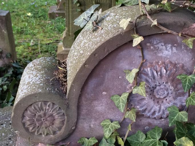 Keywords: tombstone death ivy grave die cemetery rock carving grieve green graves nature transience mourning