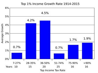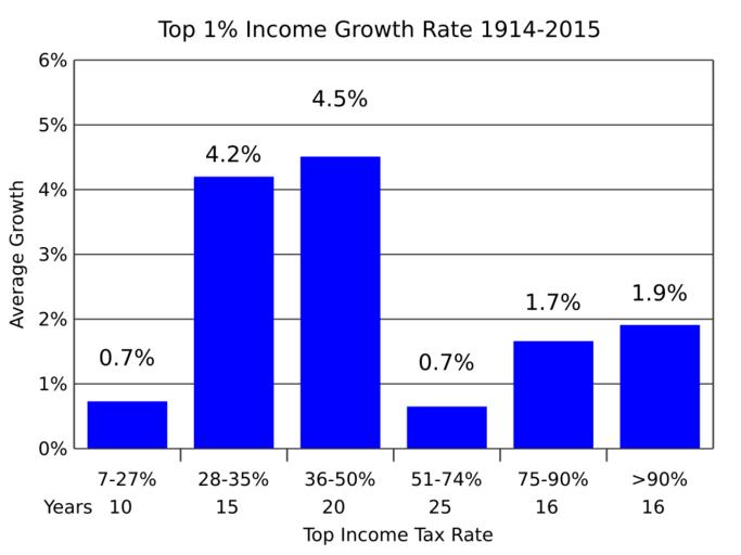 | Keywords: Top one percent income growth by top tax rate.svg translate yes en Average annual percent growth in U S top 1 income by top marginal income tax rate 1914-2015 The rate that benefited everyone the most equally was 91 Data source http //eml berkeley edu/~saez/ income Income Wealth Inequality and the http //tpcprod urban org/taxfacts/displayafact cfm Docid 623 Topic2id 30 Tax Policy Center 2016-09-20 own Delphi234 other versions cc-zero Income distribution in the United States Income tax in the United States |