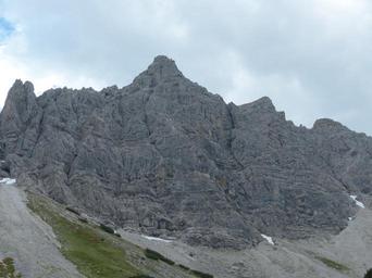 Keywords: top of pools mountain summit rock wall climb climbing via ferrata laugh top north face via ferrata laugh lace north wall rubble field vilsalpseeberge allgäu alps tyrol austria