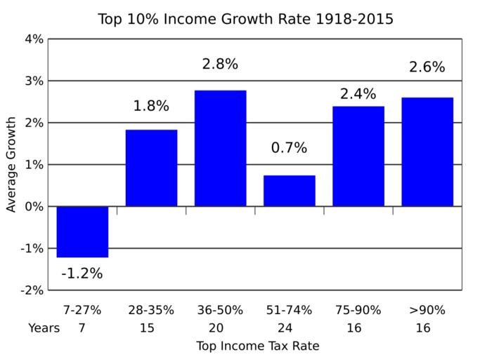 | Keywords: Top ten percent income growth by top tax rate.svg translate yes en Average annual percent growth in U S top 10 income by top marginal income tax rate 1918-2015 The rate that benefited everyone the most equally was 91 Data source http //eml berkeley edu/~saez/ income Income and Wealth Inequality and the http //tpcprod urban org/taxfacts/displayafact cfm Docid 623 Topic2id 30 Tax Policy Center 2016-09-20 own Delphi234 other versions cc-zero Income distribution in the United States Income tax in the United States |