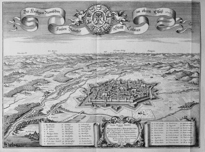 Keywords: Topographia Alsatiae (Merian) p 007.JPG p_006 p_008 Haut-Rhin in the 1660s Historical images of Colmar Coats of arms of Colmar