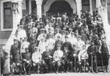 | Keywords: Topuzov-samokov.jpg en Soldiers from the Bulgarian garrison in Samokov headed by Colonel Topuzov to visit the Turkish garrison in Mehomia July 1908 bg Военнослужещи от бълга ския га низон в Самоков начело с подполковник Топузов на визита на ту ския га низон в ехомия юли 1908 Personal archive Author 1908-07 Military history of Bulgaria Military people of the Ottoman Empire PD-old |