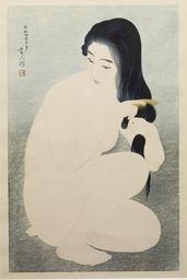 | Keywords: Torii Kotondo - Kamisuki (Combing Her Hair) - Walters 95889.jpg 1929 woodblock print on paper cm 46 8 31 accession number 95 889 82799 C Bertram Hoffberger December 2 1980 by purchase from Tsuru Gallery New York City Erna Hoffberger Upperville Virginia 1997 by inheritance Monika Griff Silver Spring Maryland October 19 2010 by inheritance Walters Art Museum Gift from the Erna and Charles Bertram Hoffberger Collection 2011 place of origin Japan PD-Japan Japanese prints in the Walters Art Museum Torii Kotondo Media contributed by the Walters Art Museum needs category review |
