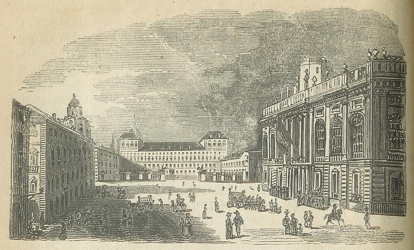 | Keywords: Torino e suoi dintorni 9.jpg en Engraving of Turin's Piazza Castello Royal Palace center Palazzo Madama front right and Palazzo Chiablese back left it Incisione di Piazza Castello a Torino con Il Palazzo Reale Palazzo Madama e Palazzo Chiablese Guglielmo Stefani Domenico Mondo Torino e suoi dintorni - guida storico-artistica amministrativa e commerciale Torino Carlo Schiepatti 1852 Pagina 38 photography by Anassagora unknown Domenico Mondo Turin 1852 45 4 15 4 N 7 41 5 4 E PD-old Palazzo Chiablese Turin Engravings of Turin Piazza Castello Turin Royal Palace Turin Palazzo Madama Turin Turin in art San Lorenzo Turin Torino e suoi dintorni |