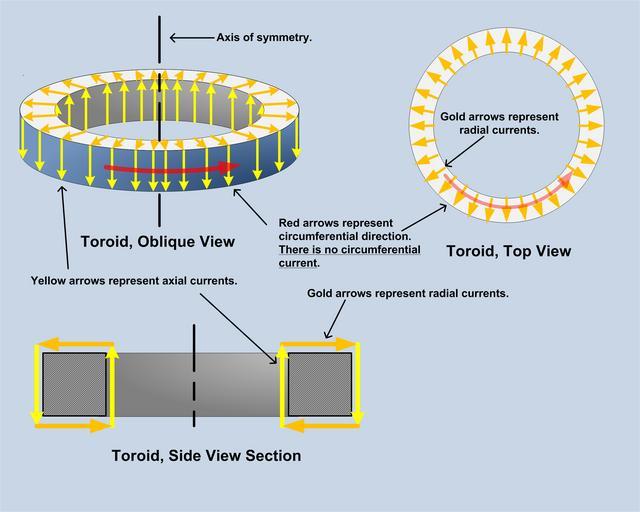 | Keywords: Toroidal Inductor-with Fully Confined Magnetic B Field, Three View.JPG Toroidal inductor with fully confined magnetic field svg A toroid shaped inductor of rectangular cross section illustrating the requirements for total confinement of the magnetic B field own Constant314 2010-10-13 Toroidal transformers Electromagnetics |