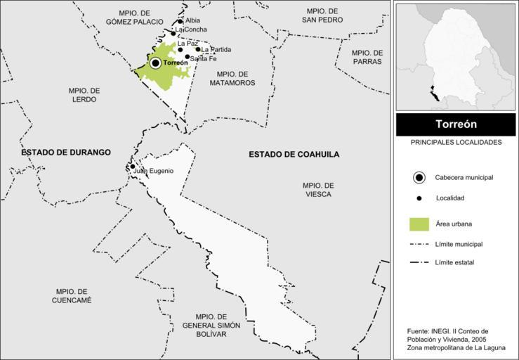 Keywords: Torreon localidades.svg Mapa de las principales localidades del municipio de Torreón Coahuila México own Inkscape 2010-03-06 Battroid Maps of Coahuila