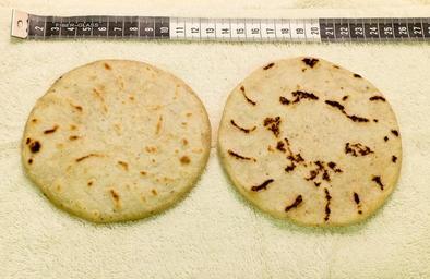 | Keywords: Tortillas Salvadoreñas. Cara (izq), Lomo (der).jpg es Tortillas salvadoreñas hechas a mano Izq el lado llamado la cara y der el lado llamado el lomo en Handmade Salvadorean tortillas On the left the side called la cara and on the right the side called el lomo own Ll1324 Maize tortillas Food of El Salvador Cuisine of El Salvador Cc-zero |