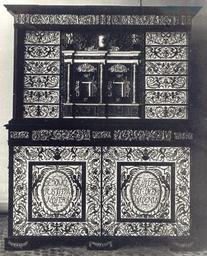 | Keywords: Tortoiseshell cabinet Sobieski.JPG Italy Cabinet of John III Sobieski < 1683 Tortoise-shell ivory mother-of-pearl ebony cm 205 162 58 Owned by the Wilanów Palace lost 1939-1945 accession number object history credit line Presented to the king by Pope Innocent XI after victorious battle of Vienna It was looted during the World War II by Alfred Schellenberg from the Wilanów Palace in Warsaw Catalogue of stolen and missing cultural achievements / comp Jan Świeczyński; Ośrodek Informacyjno-Koordynacyjny Ochrony Obiektów Muzealnych Warsaw 1988 Editor Wojciech Jaskulski Piotr Ogrodzki See also http //kolekcje mkidn gov pl/katalog/podglad ID 12824 Department of National Heritage Wartime losses an official webpage of Polish Ministry of Culture Art and National Heritage PD-Art Photo Photo http //kolekcje mkidn gov pl/katalog/podglad ID 12824 Department of National Heritage Wartime losses an official webpage of Polish Ministry of Culture Art and National Heritage author < 1939 PD-Polish Anonymous-EU Furniture lost in Poland during World War II Missing items from the Wilanów Palace John III Sobieski Collection Cabinets Wooden furniture Incrustation Tortoiseshell Mother of pearl inlay Ebony |