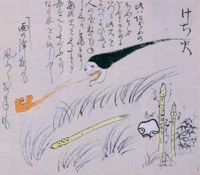 Keywords: Tosa Kechi-bi.jpg Kechibi けち火 a will-o'-the-wisp from Kōchi Prefecture from the Tosa Obake Zōshi 佐お化け草紙 scanned from ISBN 978-4-336-04547-8 1859 Author PD-Japan Will-o'-the-wisps Yokai_Emaki Legendary_creatures_from_Kochi_Prefecture