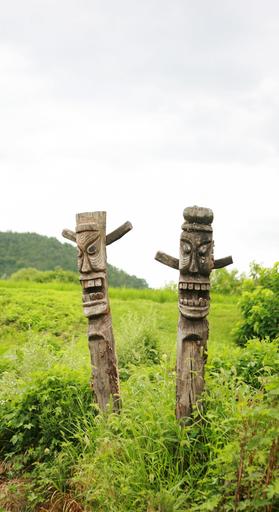 Keywords: totem pole wood carvings indian skulls masks