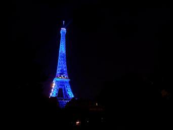 Keywords: Tour EIffel p11.JPG own 2008-07-12 23 00 01 AlfvanBeem cc-zero July 2008 in Paris Eiffel Tower in European Union livery at night Cities photographed by Alf van Beem