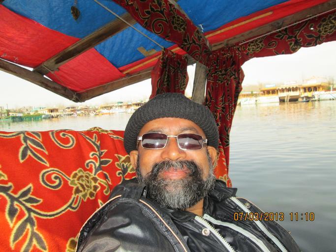 Keywords: Tourist Rudolph.A.furtado on shikara 'Arif'..JPG en Seafarer/Blogger/Tourist Rudolph A Furtado on the Dal Lake own Rudolph A furtado Thursday 7-3-2013 Watercraft on Dal Lake Cc-zero