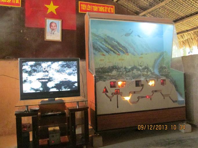 MAKE A MEME View Large Image ...Tourist Video room' in Cu Chi Complex.JPG en The underground bunker where tourists are given a lecture on the Cu Chi Tunnel history and architectural design own Rudolph A Furtado Monday 9-12-2013 Cu Chi Tunnel Cc-zero