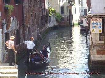Keywords: Tourists on a Gondolier ride..jpg en Tourists on a Gondolier ride in the narrow waterways of Venice own Rudolph A furtado Tuesday 18-5-2010 Gondolas boat
