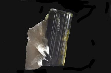 Keywords: Tourmaline dravite et albite (Brésil).jpg Dravite and Albite Cristal de Tourmaline Dravite et cristaux d'Albite Own 01/01/09 Parent Géry Dravite Albite Taken with Nikon D90