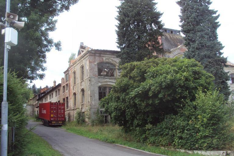 Keywords: Továrna Palme 2.JPG cs Postranní vchod staré sklárny E Palmeho own Zákupák 2014-08-09 Buildings in Kamenický Šenov