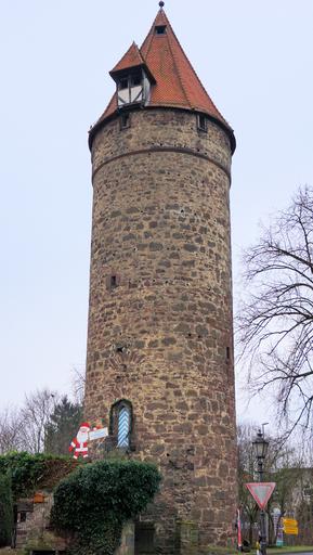 Keywords: tower architecture building spire view from the bottom high medieval watchtower places of interest historically grebenstein