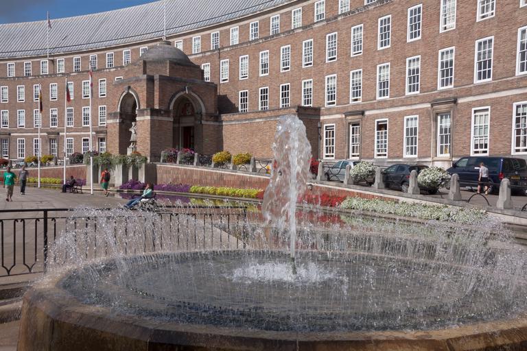 Keywords: town hall bristol fountain building architecture facade city water half round england