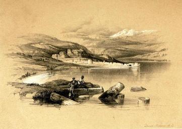 | Keywords: Town of Tiberias looking towards Lebanon. David Roberts. 1855.jpg  Town of Tiberias looking towards Lebanon en The Artist conceives the columns in the foreground to mark the site of ancient baths from the hot springs still issuing round the ruins which lie on the shore of the Lake about half an hour's walk south of the City The whole way from the Town is marked by traces and remains of the ancient City ; several columns of grey granite twelve or fifteen feet long lie together about half way to the baths An old bathing house remains and is still used by the common people; but Ibrahim Pasha in 1838 raised at the distance of some rods from the site a handsome edifice for public and private bathing consisting of a large circular apartment covered with a dome and having a marble pavement around a fine circular reservoir to which steps descend The roof is supported by columns Many doors lead into this apartment At the period of the Artist's visit this bath was crowded with pilgrims who at this season were returning from Jerusalem The building contains private apartments for those who can afford to pay for them which are well and orientally furnished and some have beautiful marble baths Above the old bathing house is a large reservoir into which the water is first received and allowed to cool before it flows into the bath ; this is necessary for its temperature when it issues from the spring is 144° of Fahrenheit There are four springs nearly together ; the taste of the water is salt and bitter like hot sea water and it gives out a strong odour of sulphur Those waters are considered highly efficacious in rheumatic affections and debility and are much resorted to from all parts of Syria They are spoken of by Pliny and by Josephus and they were called Ammaus Warm Baths In the Talmud the springs are mentioned as the ancient Hammath The view of Tiberias and the Lake from this spot backed as it is by the snowy summits of Lebanon is strikingly picturesque ; but it wants wood though the vegetation is rank in grass brambles and low shrubs http //archive org/details/holylandsyriaidu1to2robe The Holy Land Syria Idumea Arabia Egypt Nubia 1855 1855 Originally from 1842 Creator David Roberts 100px PD-old-auto-1923 1864 Sea of Galilee in art Tiberias in art Louis Haghe Paintings of Palestine by David Roberts |