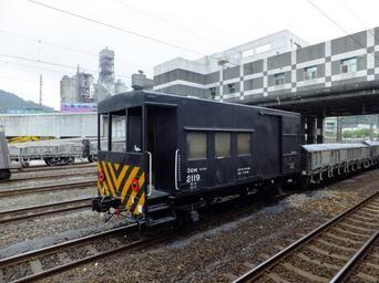 Keywords: TRA 3CK2119 in Suaosin Station 20130504.jpg zh-tw 臺鐵3CK2000型守車2119, 於蘇澳新站待避線 Own 玄史生 2013-05-04 Cabooses of Taiwan Railway Administration TRA Suaosin Station 玄史生写 文庫 Taken with Fujifilm FinePix F550EXR Cc-zero