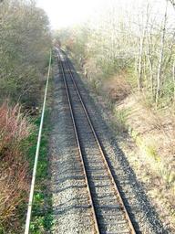 Keywords: Track Flensburg-Kiel.jpg de Blick auf das Gleis der Bahnstrecke von Kiel nach Flensburg nördlich von Süderbrarup in Richtung Sörup own Hedwig von Ebbel erstellt 2009-04-10 Rail tracks in Germany Süderbrarup Kiel “Flensburg railway line