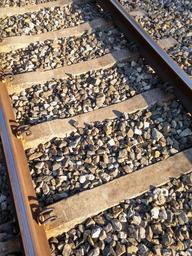 Keywords: tracks gravel concrete steel gray