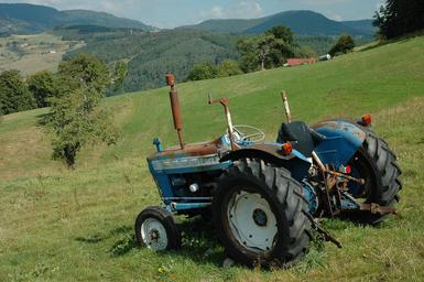 Keywords: tractor alpine pasture meadow slope landscape nature mountain management agriculture