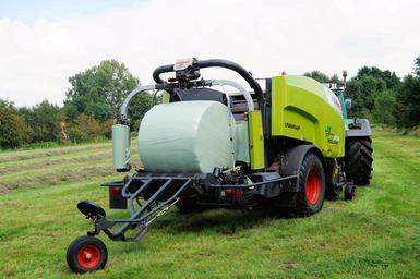 Keywords: tractors heurundballen round bales bale hay slide pack packaging silofolieneinpackgerät food agriculture cattle feed