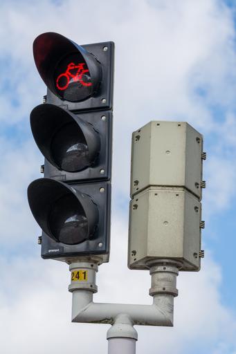 Keywords: traffic light traffic lights crossing danger sign crossroads light red red light bicycle cyclist cycling doubt no hesitation agreement appointment consent traffic rules appointments cancel stop blockade ban